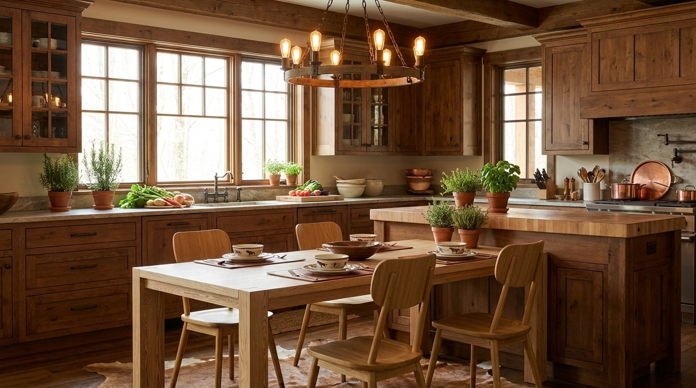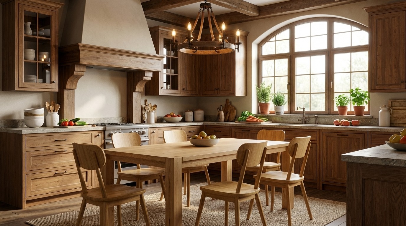 Prompt: Görselde paylaştığım masa ve sandalye için batı mimarisinde dizayn edilmiş bir mutfağın içinde ürünlere uygun sahneleme yap. Kullanım amacına hizmet eden profesyonel fotoğrafçı tarafından çekilen ürün görseli oluştur.