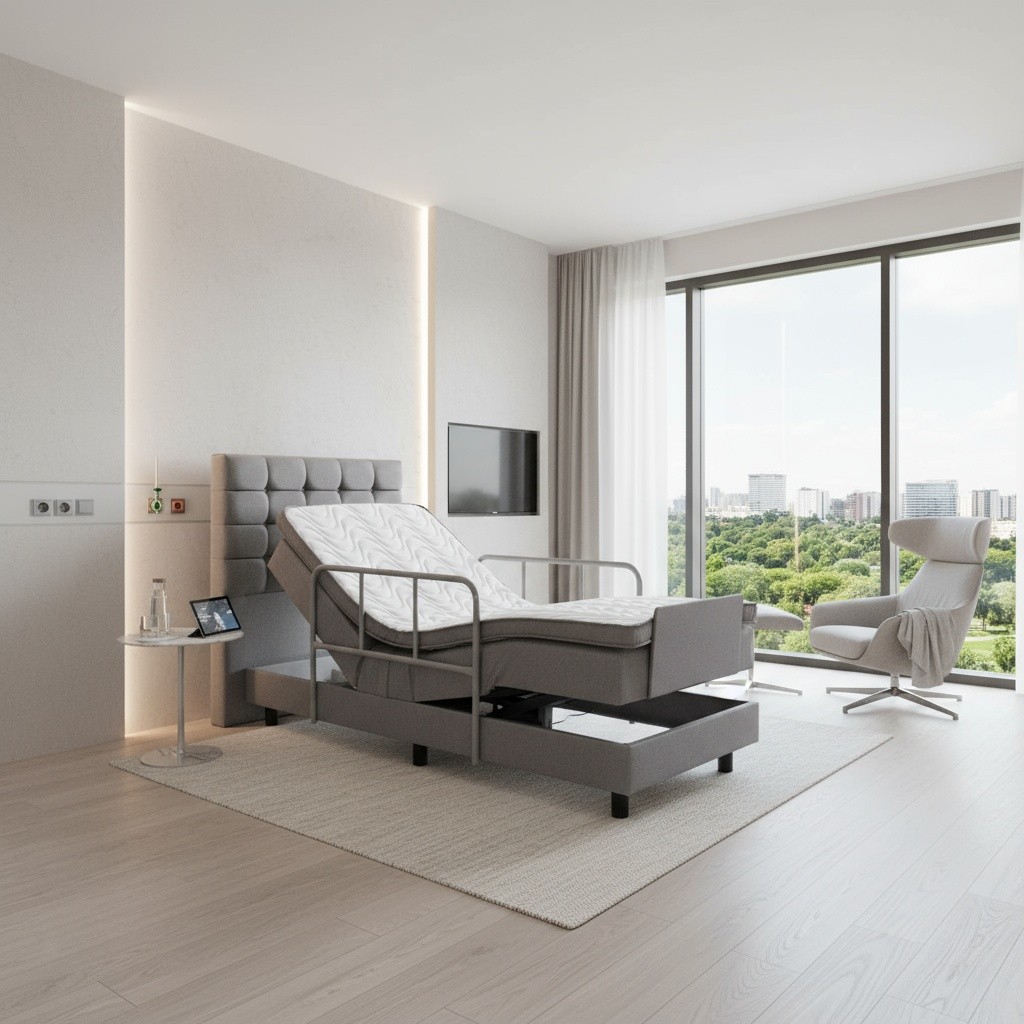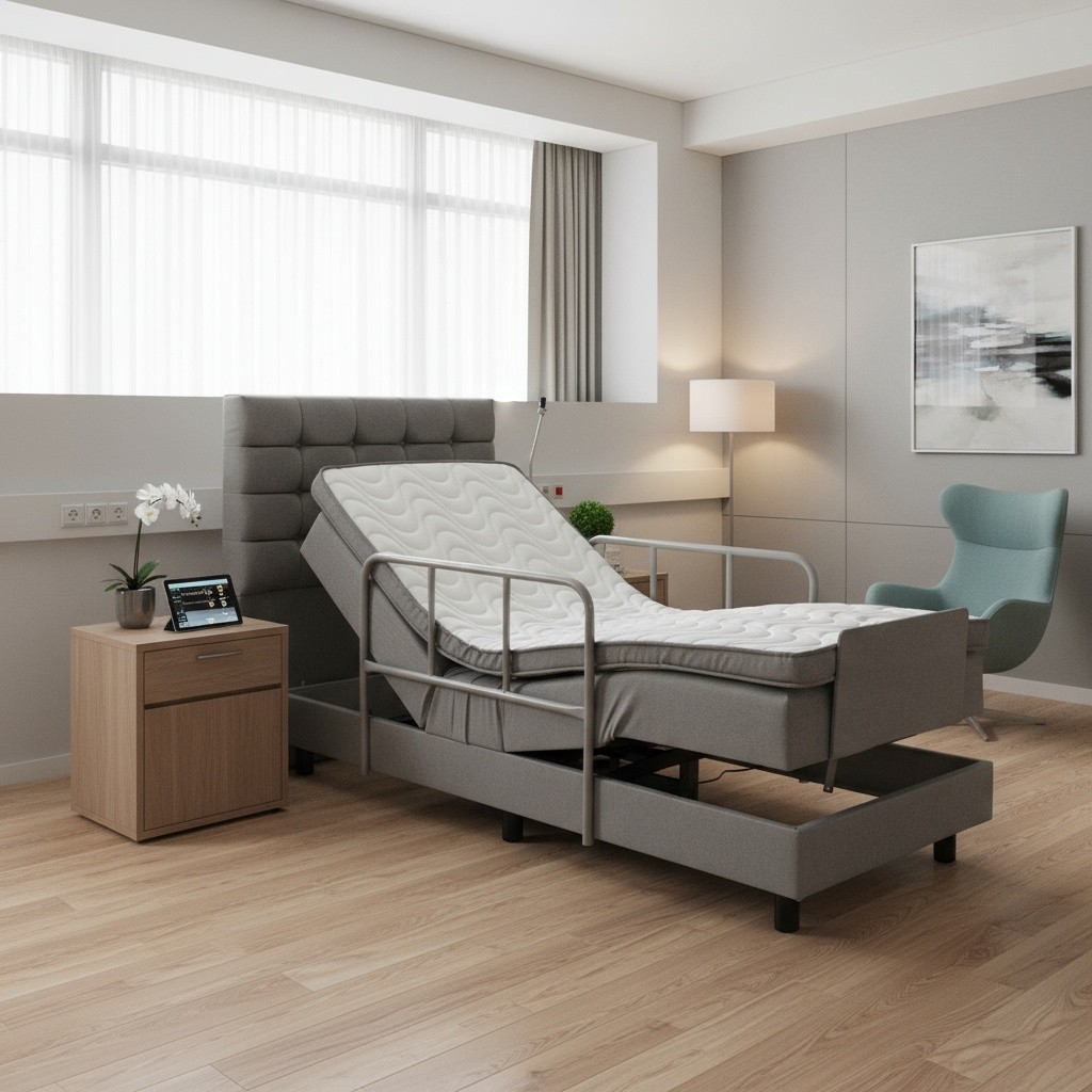 Prompt: Hasta yatağını premium hastane odasında gerçekçi sahneleme yap