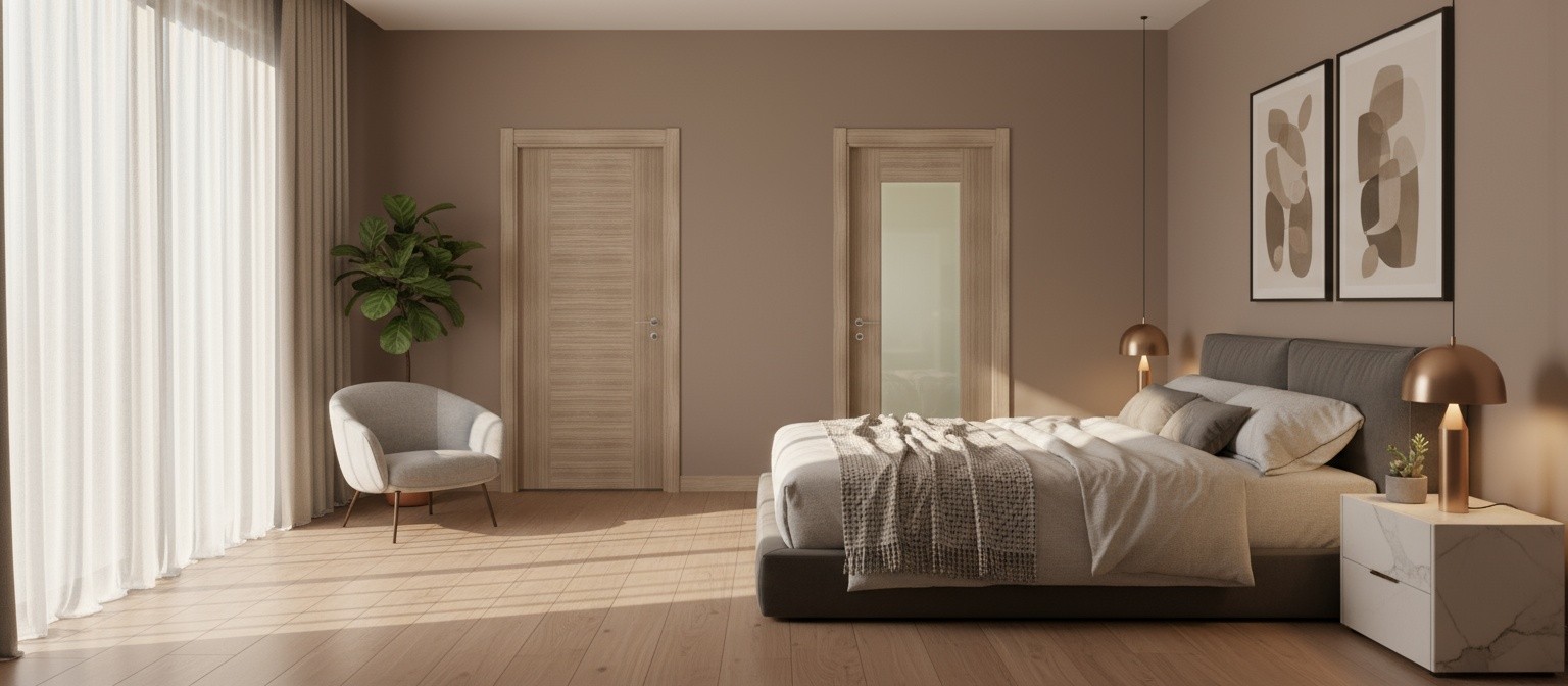 Prompt: Görseldeki iki kapıyı villanın farklı odaların da sahneleme yap