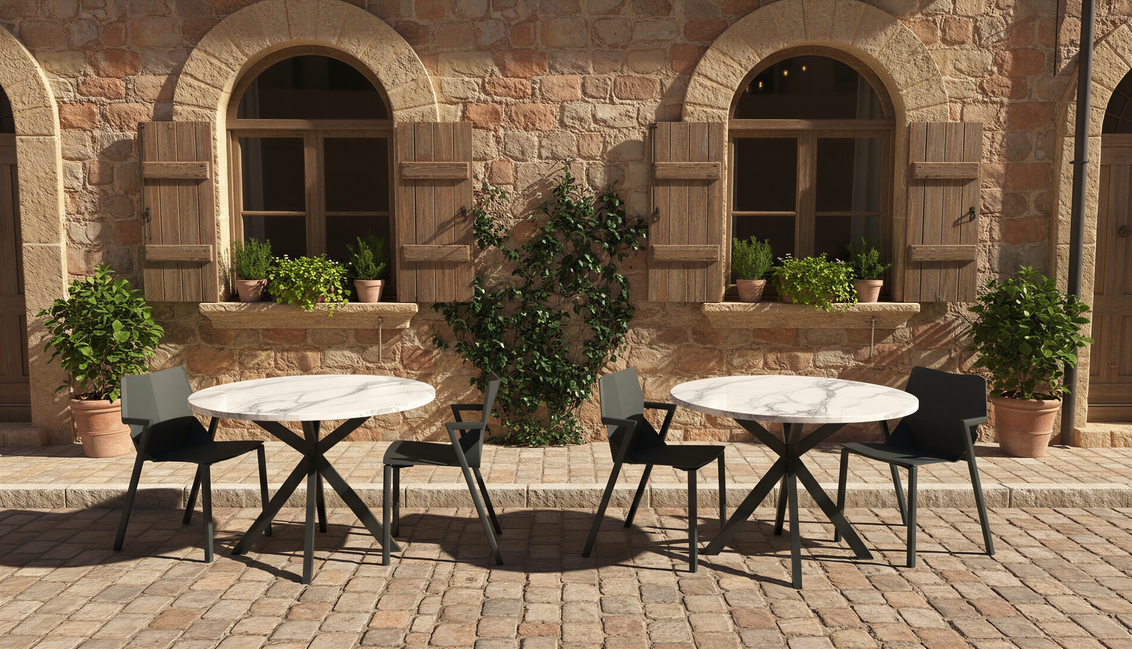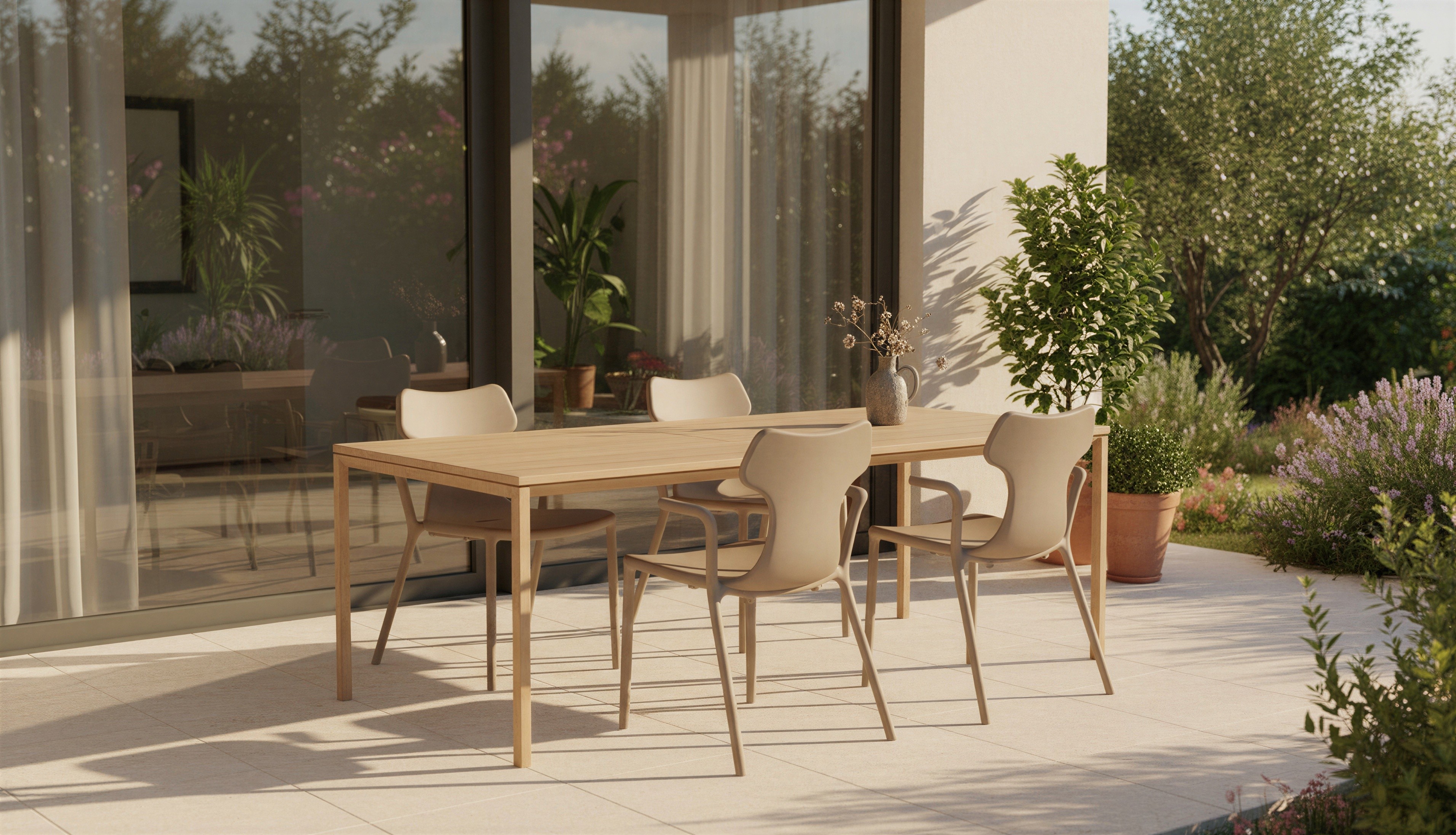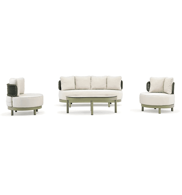 Prompt: Oturma grubunu villanın bahçesinde katalog görseli olacak şekilde konumlandır