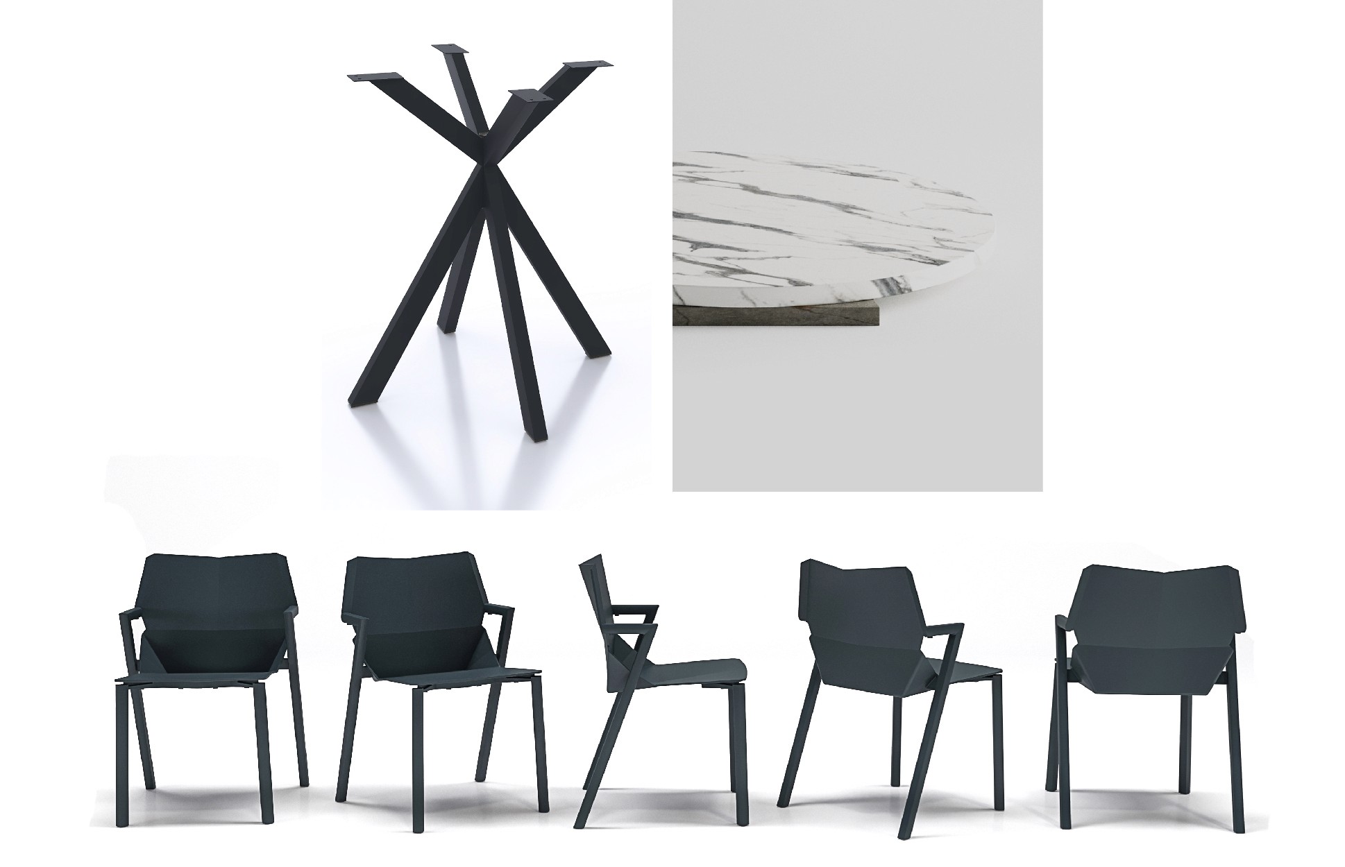 Prompt: Masa ayağı, masa tablası ve sandalyeyi birleştirerek katalog görseli oluştur.